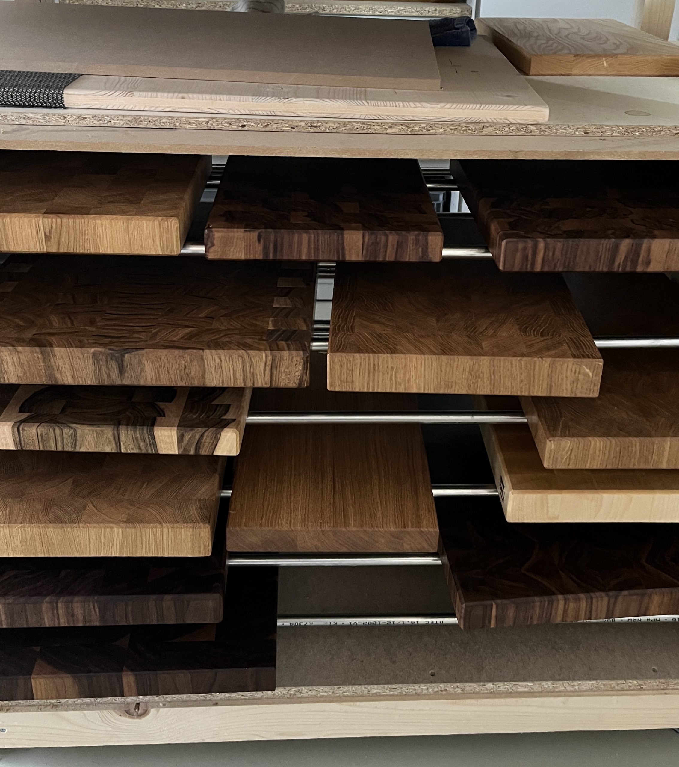 Angefangen hat alles mit der Suche nach dem perfekten Schneidebrett. Da ich gerne koche, wollte ich ein hochwertiges, langlebiges Brett. Nicht nur praktisch, sondern auch schön. Also habe ich selbst eins gebaut. Aus dieser ersten Idee wurde eine echte Leidenschaft. Heute fertige ich Schneidebretter sowie andere kleine Holzprojekte.